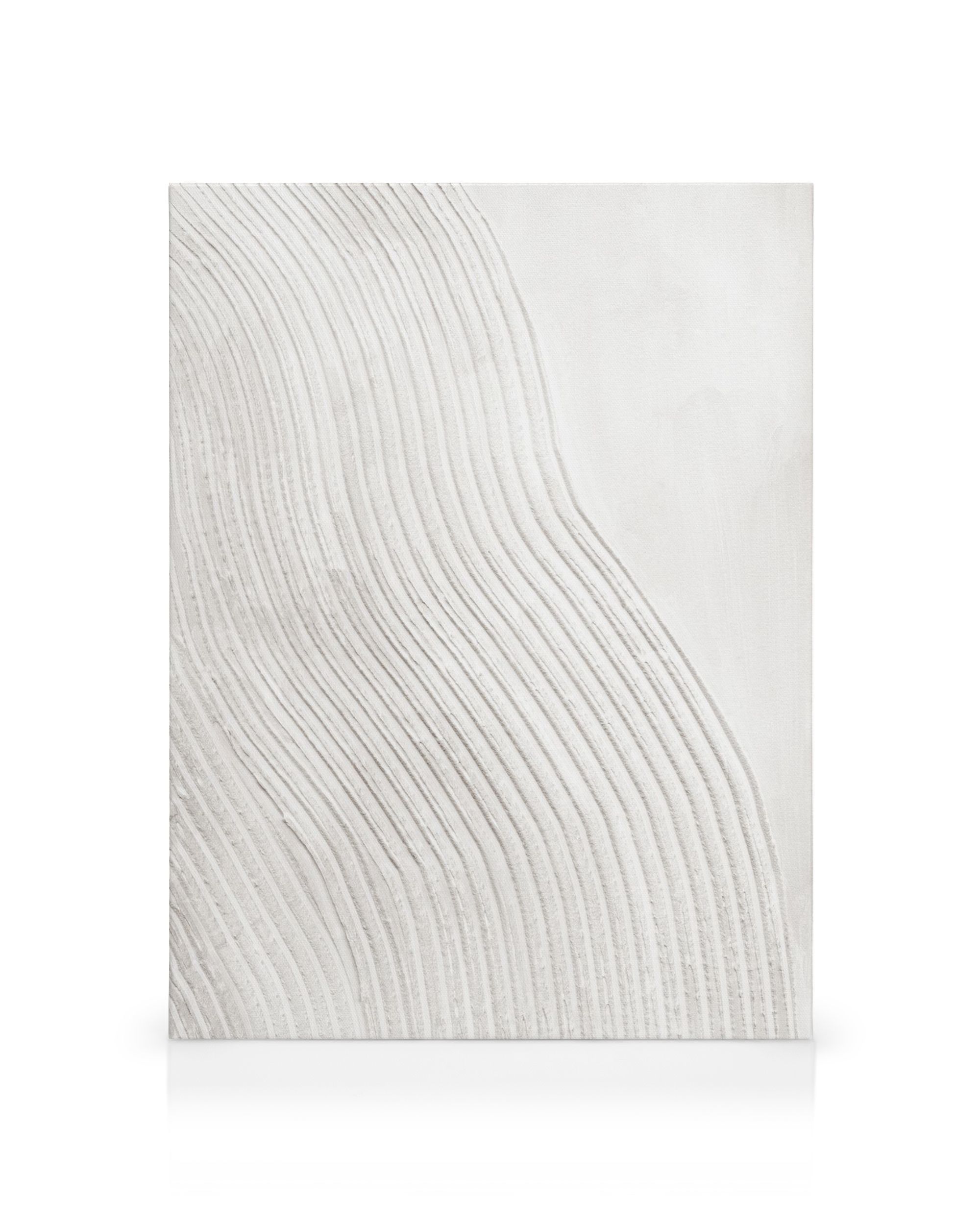 Abstrakcyjny obraz na płótnie z falistymi liniami na jasnym tle, tworzący efekt tekstury. Doskonały do minimalistycznego domu.