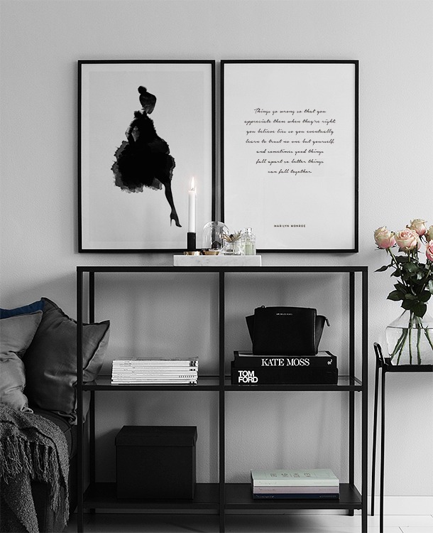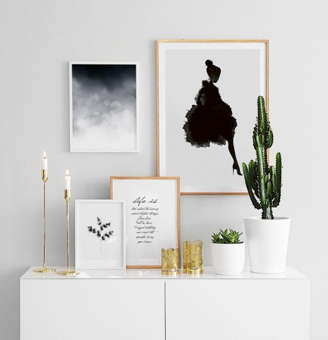Stilrena posters, affischer med illustrationer i svartvitt.