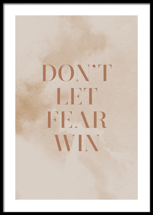 Wyselekcjonowany wzór Plakat z cytatem „Don’t let fear win” w kolorze brązowym na beżowym tle o wyraźnej fakturze. Czasami życie jest trudne i przerażające, ale ten obraz przypomina, żebyśmy nie pozwolili strachowi przejąć nad nami kontroli ani nas zatrzymać.