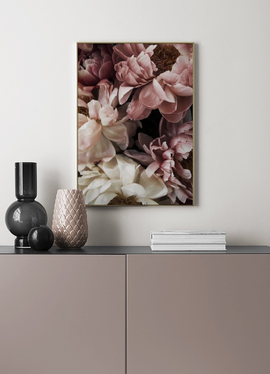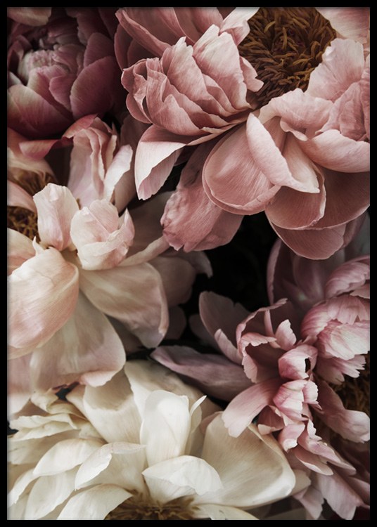 Wyselekcjonowany wzór Zdjęcie dużych piwonii w kolorze różowym i białym. Jeśli chcesz dodać do swojego domu romantyczne akcenty, obrazy botaniczne są idealnym wyborem. Dodadzą zarówno ciepła, jak i zmysłowości, dzięki czemu idealnie nadadzą się do umieszczenia na ścianie sypialni. Stwórz ścianę wypełnioną obrazami botanicznymi!