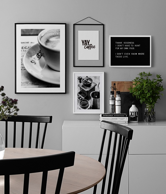Bez względu na to, czy wolisz kuchnię w stylu rustykalnym, elegancki minimalizm, czy też styl bardziej nowoczesny, gwarantujemy, że mamy plakat o tematyce kulinarnej dla Ciebie i do Twojej kuchni. Kuchnię warto utrzymywać w delikatniejszych, bardziej stonowanych barwach, ponieważ dzięki temu wydaje się cieplejsza i bardziej przytulna. Używaj ziół, owoców, desek do krojenia i książek z przepisami, które pasują do ściany dekoracyjnej — w ten sposób nadasz wnętrzu bardziej osobistego i żywego charakteru. Tutaj znajdziesz inspiracje do wystroju ścian swojej kuchni!