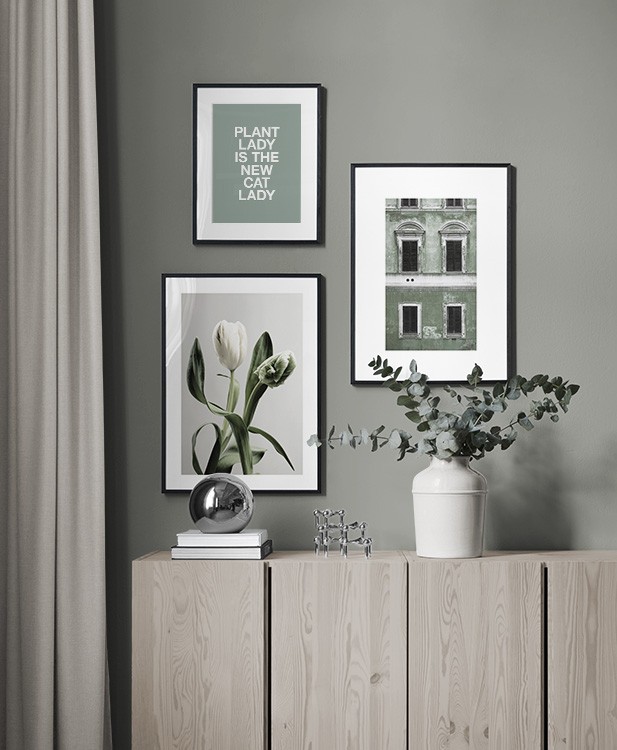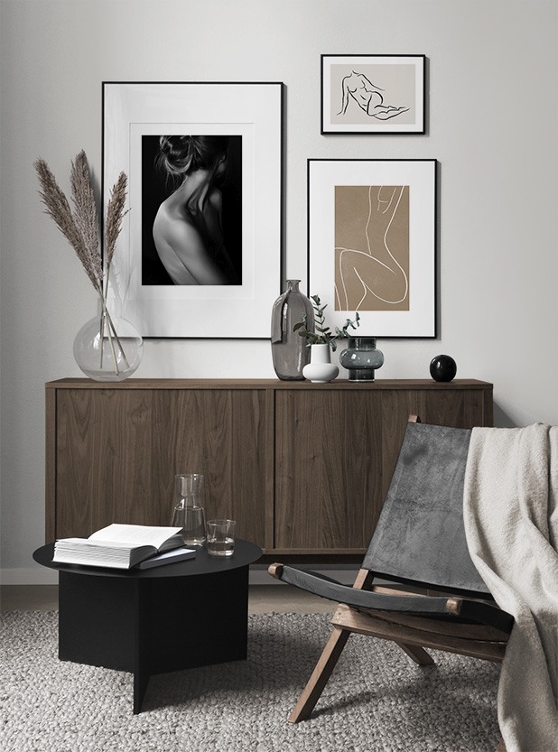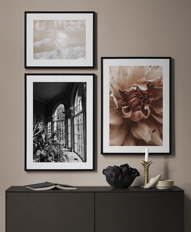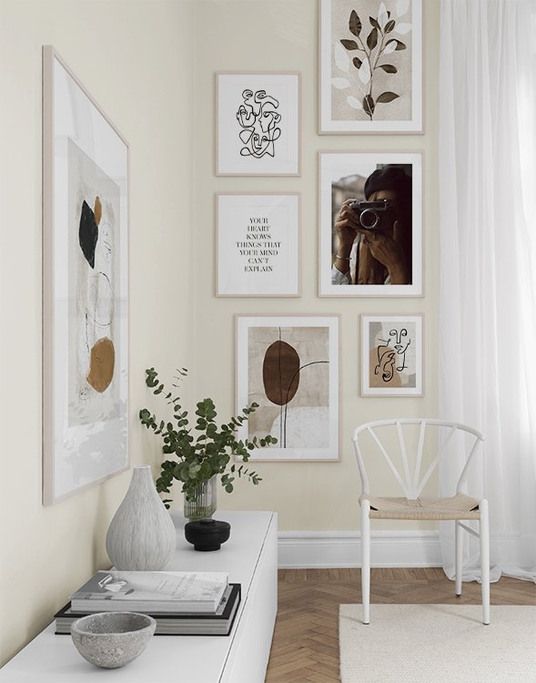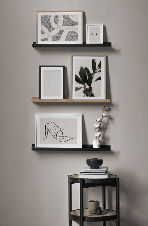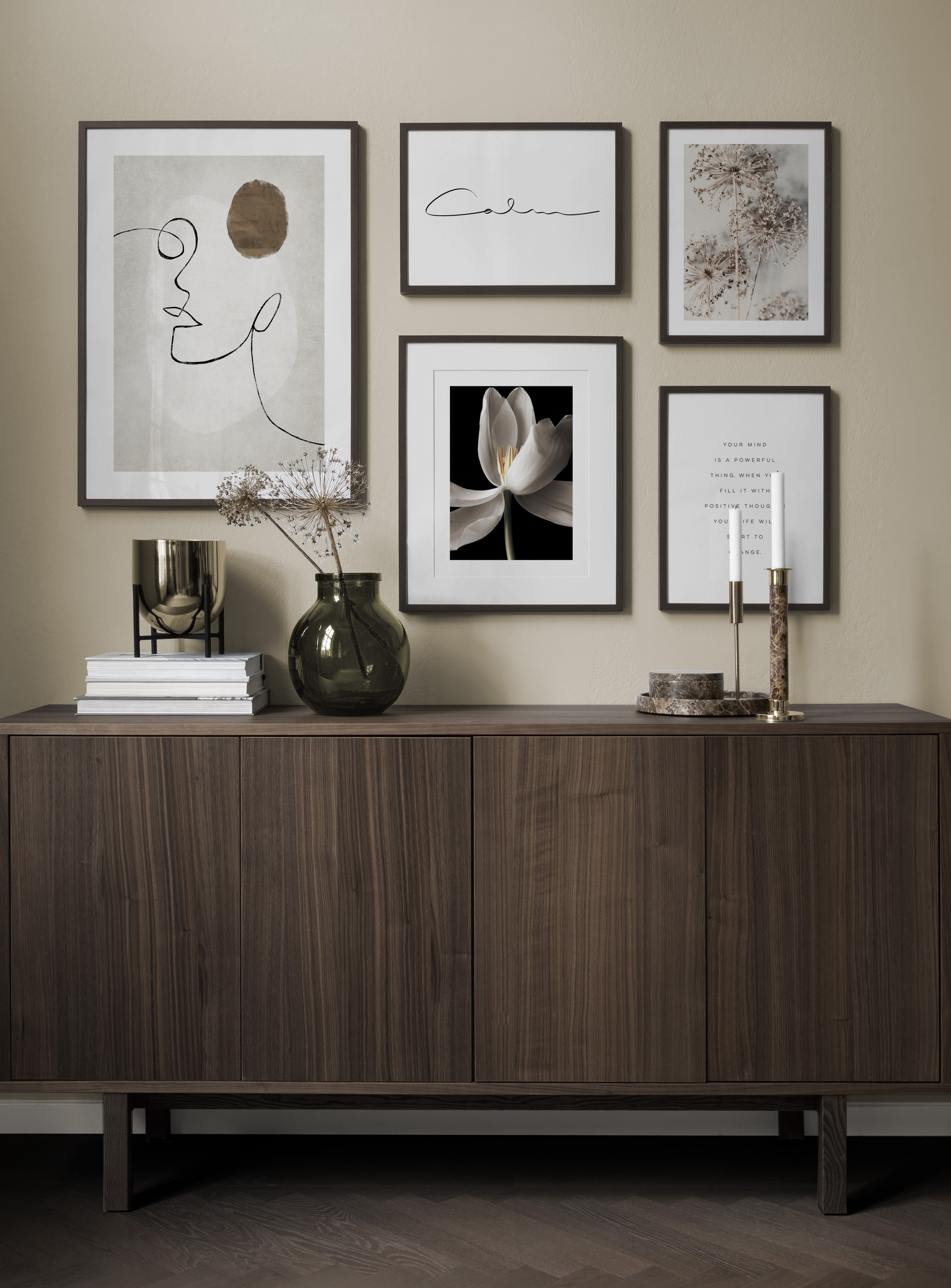Co powiesz na umieszczenie plakatów na meblach?. Jest to doskonały sposób, by uniknąć wiercenia otworów w ścianach! Postaw obrazy na półce lub na ławce umieszczonej przy ścianie, a wokół nich stwórz wyjątkową dekorację przykuwającą uwagę. W ten sposób łatwo możesz zmieniać wystrój przedpokoju i dostosować go do swego gustu i pór roku! Jeżeli wolisz powiesić obrazy, dobrą opcją jest stworzenie nowoczesnej galerii, która pasuje zarówno do małych jak i dużych pomieszczeń.