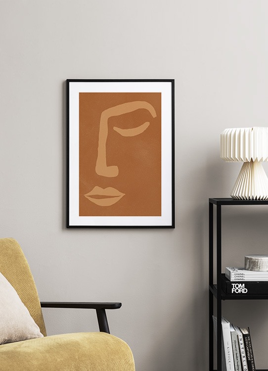 Od 25,80 złAbstrakcyjna ilustracja z twarzą narysowaną grubymi, beżowymi liniami na brązowym tle z drobnymi plamkami. Wprowadzenie do domu ciepłych kolorów ziemi stworzy odprężającą atmosferę, która idealnie sprawdza się w salonie.