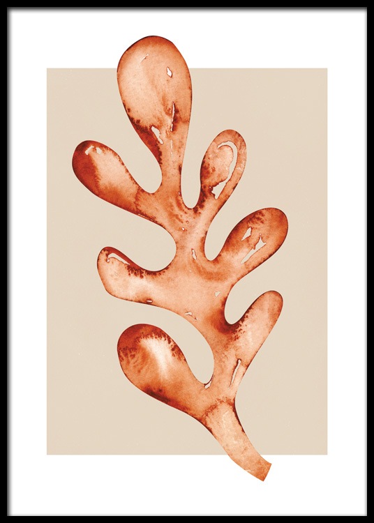Wyselekcjonowany wzór Akwarelowy obraz z koralowcem w kolorze ciepłego brązu na beżowym tle. Dzięki ciepłym i żywym kolorom na ścianach Twój pokój stanie się przytulną przestrzenią przesiąkniętą nowoczesnymi wpływami.