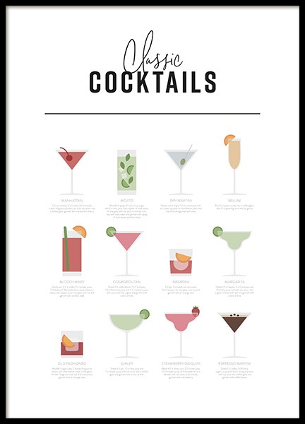 Przygotowanie dobrego drinka wcale nie jest łatwe – a wymyślenie własnego przepisu wymaga sporej wyobraźni. Plakaty z kategorii Wino i koktajle zapewnią Ci inspirację i sprawią, że kuchnia będzie prezentować się niezwykle stylowo.