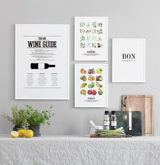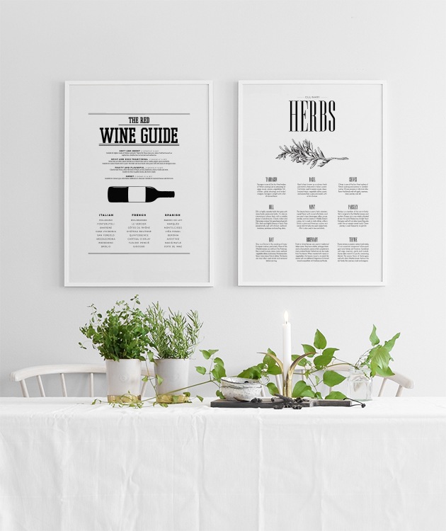 Posters, affischer och kökstavlor till köket - svartvit wine guide.