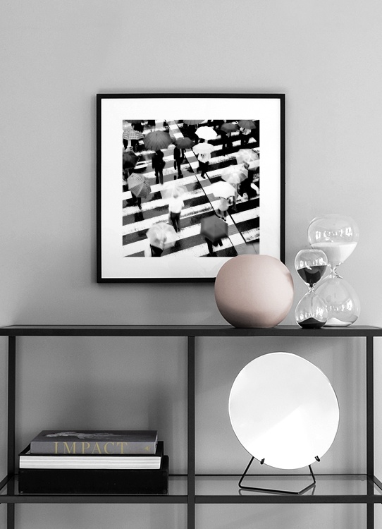 Umbrellas on Crosswalk Plakat w grupie Plakaty / Czarno-białe w Desenio AB (11678)