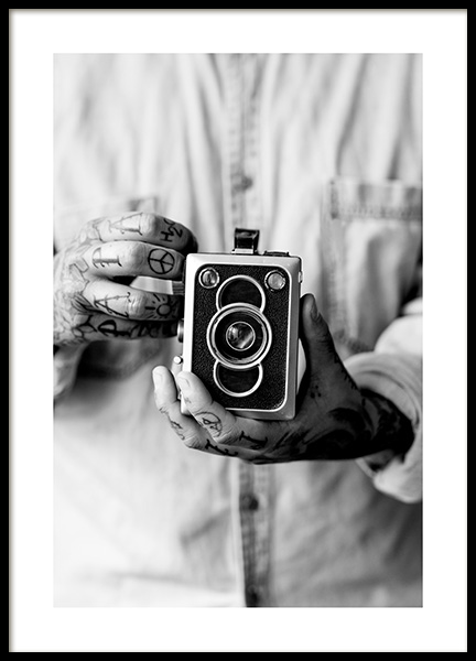 Plakat wydrukowano z efektem ziarnistości, a także białym obramowaniem, które ładnie podkreśla kompozycję.