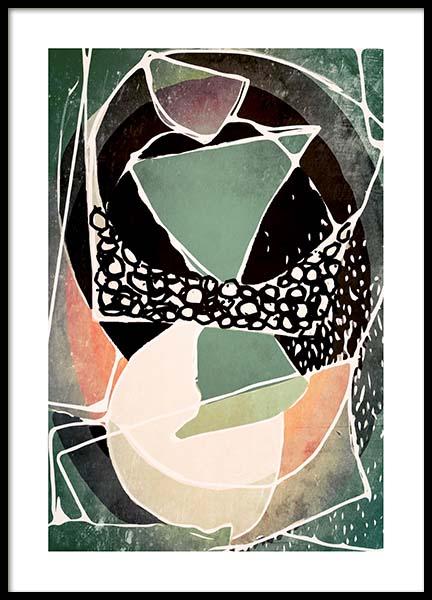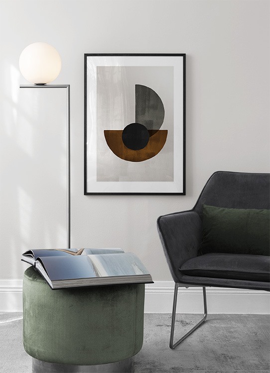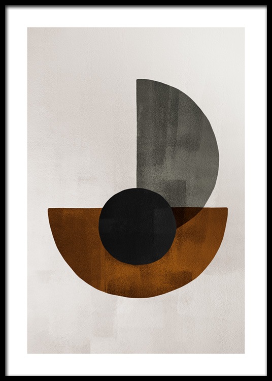 Od 45,12 złGraficzna ilustracja z beżowym tłem i brązowymi, szarymi i czarnymi kształtami geometrycznymi. Faktura płótna dodaje temu plakatowi efektownej głębi. Zawieszony na ścianie, będzie świetnie pasował do najnowszych trendów.